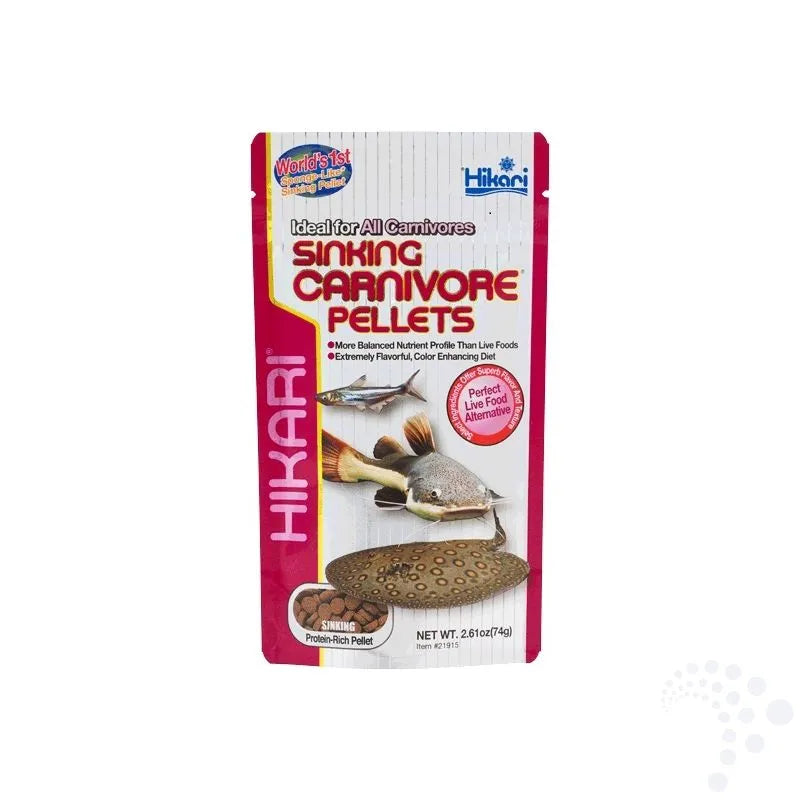 Hikari Sinking Carnivore 74g - Concebidos para os carnívoros que vivem no fundo do aquário, estes granulados que se afundam oferecem uma elevada digestibilidade e um sabor rico. Perfeito para peixes-gato, loaches e bichirs, este pacote de 74g fornece uma nutrição que melhora a saúde e minimiza os resíduos no seu aquário.