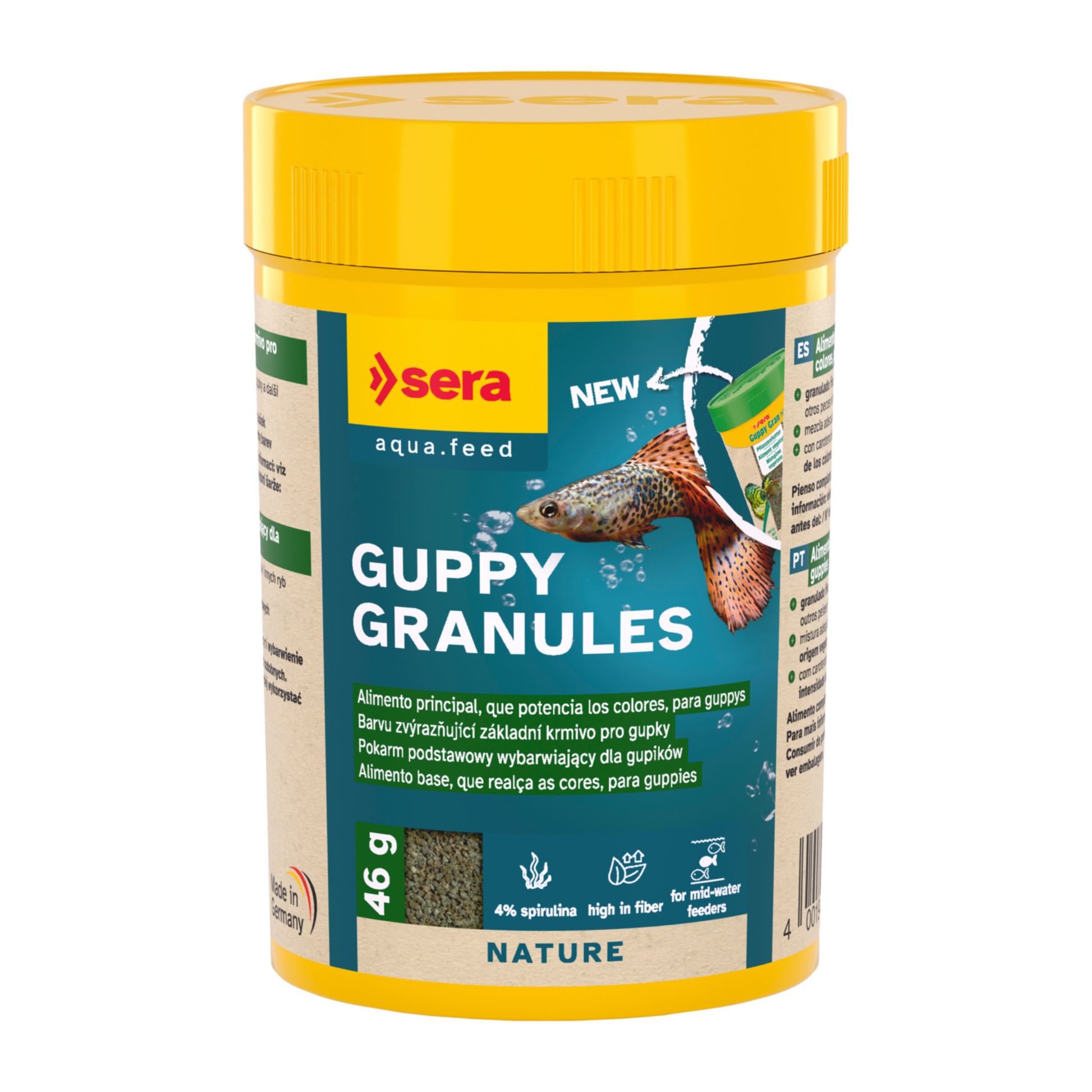 🌿 SERA GUPPY GRANULES garante uma nutrição segura, variada e natural — como os guppies encontrariam no seu habitat.